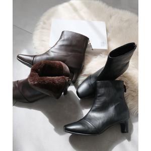 ブーツ 裏起毛スクエアトゥプレートヒールショートブーツ/防寒 レディース