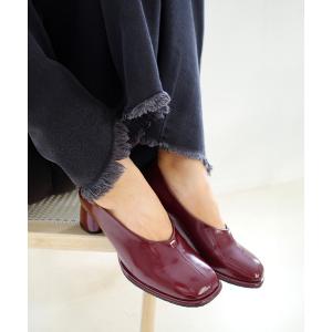 パンプス Vカットスクエアトゥバイカラーパンプス/バブーシュ