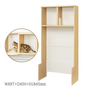 シェルフ キャットタワー キャットウォーク 壁面収納 オープンラック ディスプレイラック 幅約89cm ゲージ収納 猫用抜け穴 通路付き 木目調 ナチュラル SR-0537