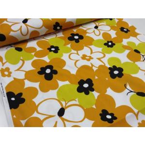 北欧風大きな花柄とチョウ オレンジ オックス生地 安い おしゃれ 布地 かわいい 生地