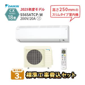 エアコン 18畳 工事費込 冷暖房 ダイキン コンパクト 単相200V 内部クリーン お掃除機能付き 空気清浄 CXシリーズ S565ATCP-W 2025年度モデル