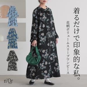 ワンピース レディース ロングワンピ 長袖 羽織 花柄 ボリュームスリーブ スタンドネック ロング丈 マキシ丈 「メール便可」「10」
