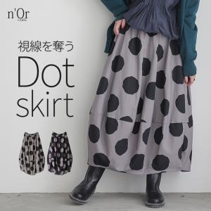 コクーンスカート ロング レディース ボトムス ドット柄 コットン混 ウエストゴム 裏地付き ポケット 体型カバー 「メール便不可」「20」
