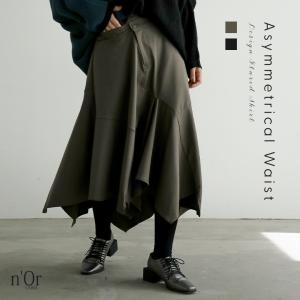 フレアスカート ミモレ丈 レディース ボトムス ロング アシンメトリー 切替 変形 タックイン スタイルアップ ウエストゴム 春 秋「メール便不可」「20」