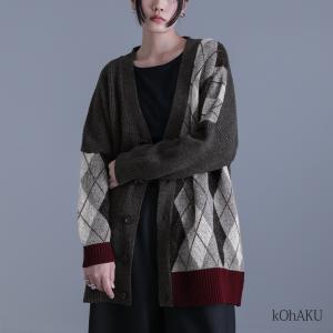 ロングカーディガン レディース 秋冬 ニットカーディガン ユニセックス トップス ロング丈ニット アーガイル柄 配色「メール便不可」「30」