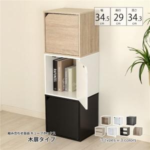 組み合わせ自由 キューブボックス 木扉 ブラック 組立品