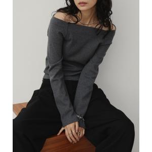 tシャツ カップ付きオフショルリブトップス/カットソー レディース