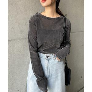 tシャツ 「新色追加」ベロアチュールクルーネック長袖トップス レディース
