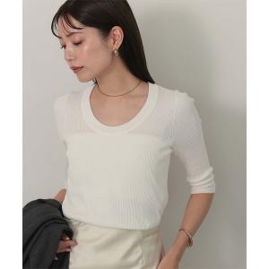 ニット セーター 「5分袖・華奢見え・通勤」配色スカラ5分袖ニット レディース
