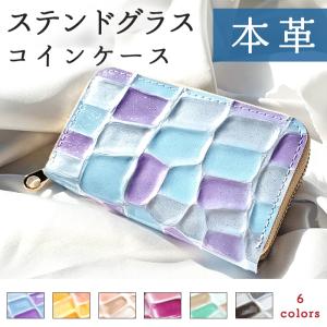 コインケース レディース 小銭入れ 本革 ステンドグラス かわいい ミニ財布 ファスナー付き おしゃれ カード入れ 女性 革 レザー 小物入れ 母の日 プレゼント