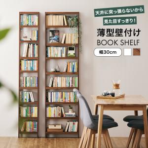 本棚 スリム 大容量 ブックシェルフ 縦 おしゃれ コミックラック 薄型 収納 北欧 ハイタイプ 可動棚 9段 幅30cm 高さ190cm ホワイト ブラウン TEH30