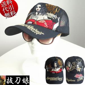 2022年春夏秋新作 抜刀娘/バットウムスメ 凛刺繍 炎 ロゴ刺繍 総刺繍 和柄アメカジ サイドバックメッシュキャップCAP 黒ブラック:F 222886