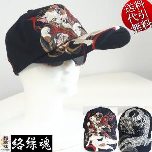 2024年冬新作 絡繰魂カラクリ魂/からくり魂 送料無料 妖怪録 猫又 ロゴ 総刺繍 サイズ調整可 サイドバック ツイル メンズ キャップCAP 黒ブラック:F 244896