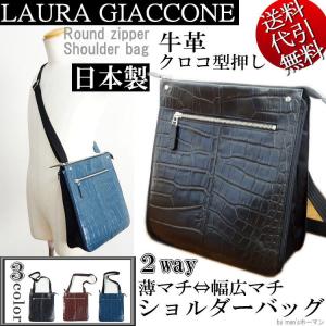2018年新作 日本製 LAURA GIACCONE/ラウラジャコーネ ラウンドZIP 牛革レザークロコ柄 ショルダーバッグ マチ幅2WAY BAG 黒/茶チョコ/紺ネイビー LA3519