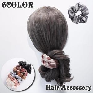 シュシュ 単品 1個 ヘアゴム 髪ゴム レディース 女性 ヘアアクセサリー 髪留め 髪飾り まとめ髪 シンプル 仕事 職場 オフィス 大人 サテン風