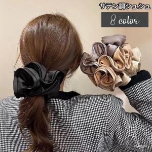 シュシュ ヘアゴム ヘアアクセサリー レディース 女性 髪飾り まとめ髪 髪留め 無地 単色 ふんわり サテン調 おしゃれ かわいい ヘアアレンジ 華
