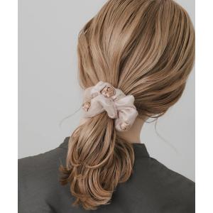 シュシュ パール装飾付きオーガンジーシュシュ