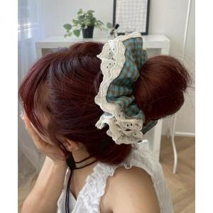 シュシュ WEGO/コットンレースギンガムチェックシュシュ
