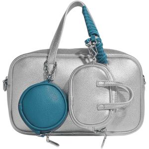 ☆ シルバー×ブルー ☆ ハンドバッグ レディース 小さめ 2way ショルダー ハンドバッグ レディース ショルダーバッグ 2way バッグ