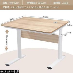 ワークデスク 昇降テーブル 幅113cm ハンドルタイプ ( スタンディングデスク 昇降デスク パソコンデスク 高さ調節 木目調 )