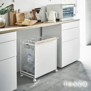 目隠し分別ダストワゴン tosca(トスカ) 3分別 キャスター付き/レジ袋/分別ゴミ箱/キッチンゴミ箱/スチール製/蓋無し/缶・ビン 山崎実業