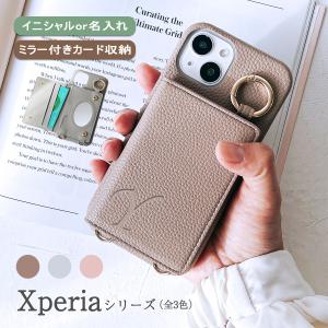 Xperia 1VII ケース ショルダー SO-51F XQ-FS44 エクスペリア ワン セブン ストラップ 鏡 カード収納 スタンド機能 「 背面 薄型 ミラー イニシャル付き 」