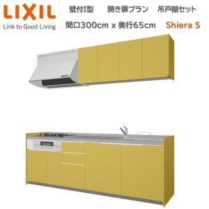 壁付I型 開き扉プラン 間口300cm奥行65cm グループ2扉色・高さ選択可能 ウォールユニット 食洗機無 システムキッチン リクシル シエラS W3000mm