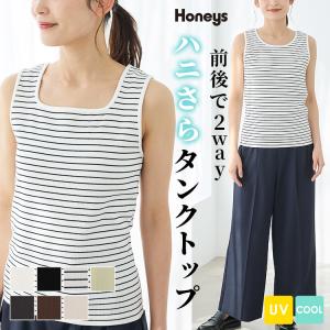 トップス タンクトップ ハニさら 接触冷感 UVカット 遮熱 2way ストレッチ テレコ素材 綿混 無地 レディース Honeys ハニーズ 前後2wayタンクトップ