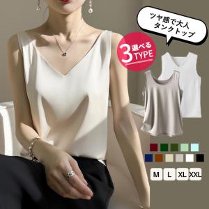 タンクトップ レディース シルクタッチ キャミソール タンクトップ サテン調 3タイプ 選べる トップス インナー[郵1]^t1102^