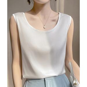 タンクトップ ノースリーブ 「大きいサイズ有」光沢の煌めき纏う。きれいめ サテン風 タンクトップ レディース レディース