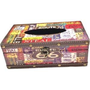 ティッシュ ペーパー ボックス カバー ケース アンティーク レトロ ヴィンテージ 風 アメリカン 雑貨 木製 66(Route 66)