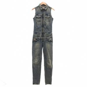 ディーゼル DIESEL デニム ジャンプスーツ オールインワン つなぎ S ダメージ加工 ノースリーブ ライトインディゴブルー /SX ■GY06