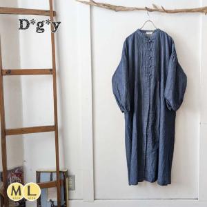 Dgy ディージーワイ ャイナボタンピンタックワンピース ロング丈 綿麻素材 ボリューム袖 前開き 羽織り 春夏 中国製 レディース
