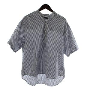 ニコアンド Niko and.. シャツ 麻 リネン M 水色 ライトブルー 白 ホワイト ストライプ柄 ノーカラー 半袖 /AN34 メンズ