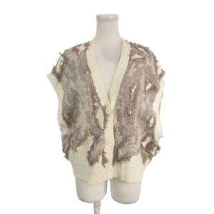 【美品】ニコアンド Niko and... *刺しゅうレースベスト*M綿クリームノースリーブ羽織ジレ上着トップス(25-2601-600)【22B62】