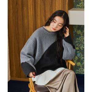 ニット セーター バイカラーアートニットプルオーバー レディース