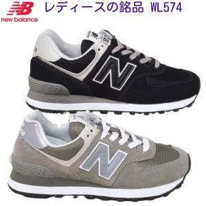 ニューバランス NEW BALANCE WL574 NB レディース スニーカー 大きいサイズ ウォーキングシューズ 天然皮革 ブラック グレー 25.5cm