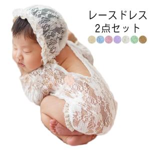 ベビードレス ワンピース ベビー服 女の子 ドレス ニューボーンフォト 2点セット レース 花柄 ホワイト ピンク 新生児 0歳 セレモニー セレモニ