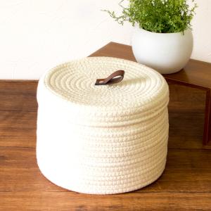 コットンロープ フタ付き丸かご / 綿 ロープ バスケット フタ付き 取っ手 ベルト ナチュラル シンプル インテリア 子供 オモチャ トイレットペーパー 収納