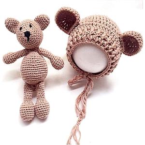 赤ちゃん ニット帽 ぬいぐるみ 2点セット 0〜3か月用 撮影 小道具 小物 ニューボーンフォト