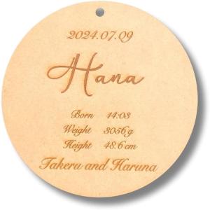 命名書 スタンド付 ニューボーンフォト 月齢カード 赤ちゃん おしゃれ かわいい 木製 丸 ネームプレート セミオーダー(ブラウン)