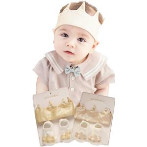 赤ちゃん ヘアバンド ベビー 王冠 ベビークラウン ハーフバースデー ニューボーンフォト 衣装 男の子 靴下付き(シルク調金, F)