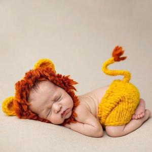 ニューボーンフォト アイテム 寝相アート Baby COSTUME オレンジ ライオン コスチューム コスプレ おしゃれ ニット 手編み 月齢フォト 新生児フォト 写真撮影 記