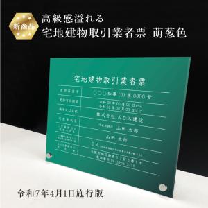 宅地建物取引業者票(令和7年4月1日施行版) 自立タイプ 『 アクリル / 萌葱色 』H35×W45cm 業者票 標識 tk-acryl01-moegi-jiritu