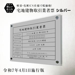 宅地建物取引業者票(令和7年4月1日施行版) 化粧ビス付き シルバー H35×W45cm 業者票 法定看板 許可票 / 看板 tk-silver-bisu