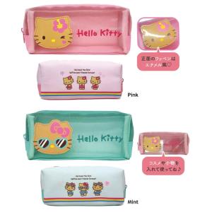 ハローキティダブルファスナーポーチ(日焼け) サンリオ キティ ペンケース メッシュポーチ ペンポーチ ペンケース コスメポーチ ポーチ 筆箱