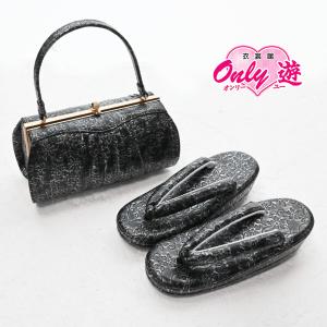 85KS100144【バーゲン品】草履バッグセット/Lサイズ/FIVESENSES/ZB-933KS/二の二枚芯/唐花/合皮/振袖/黒/フリーサイズ