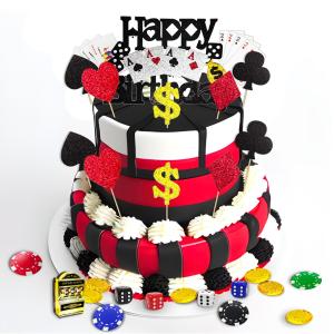 Ayearparty 30ピース カジノ バースデーケーキデコレーション ミニスロット おもちゃマシン ポーカー ケーキトッパーセット トランプ ゲー