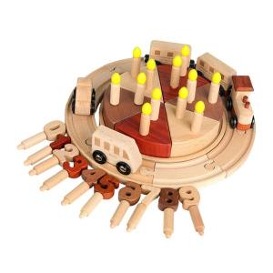 木製バースデーケーキトレイン 木製教育プレイセット 想像力豊かな遊び 子供用木製ケーキプレイセット DIY ごっこ遊び 子供用