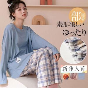 パジャマ レディース ルームウェア セット 部屋着 長袖 上下セット レディースパジャマ 綿 綿素材 コットン 襟なし 家着 シンプル おしゃれ S M L LL